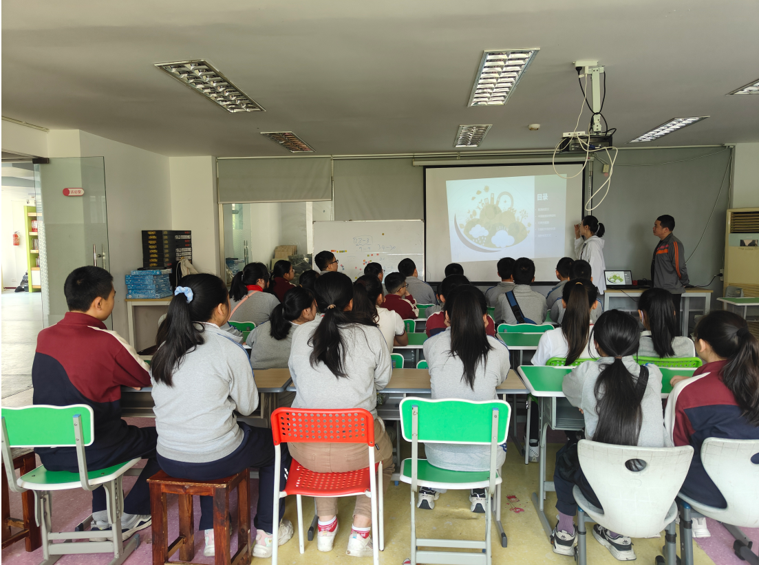 課堂上,黨員邱舒婷以“低碳同行、節(jié)能同心”為主題,用淺顯易懂的語言結(jié)合日常生活實例,向?qū)W生們講解了“能源的定義”、“環(huán)境污染的嚴重性”、“節(jié)能和環(huán)保的關(guān)系”等環(huán)保知識,同時通過播放環(huán)保短片、展示環(huán)保圖片、開展互動問答等方式使學(xué)生們更直觀、更深刻的認識什么是低碳生活以及如何在日常生活中踐行低碳理念。