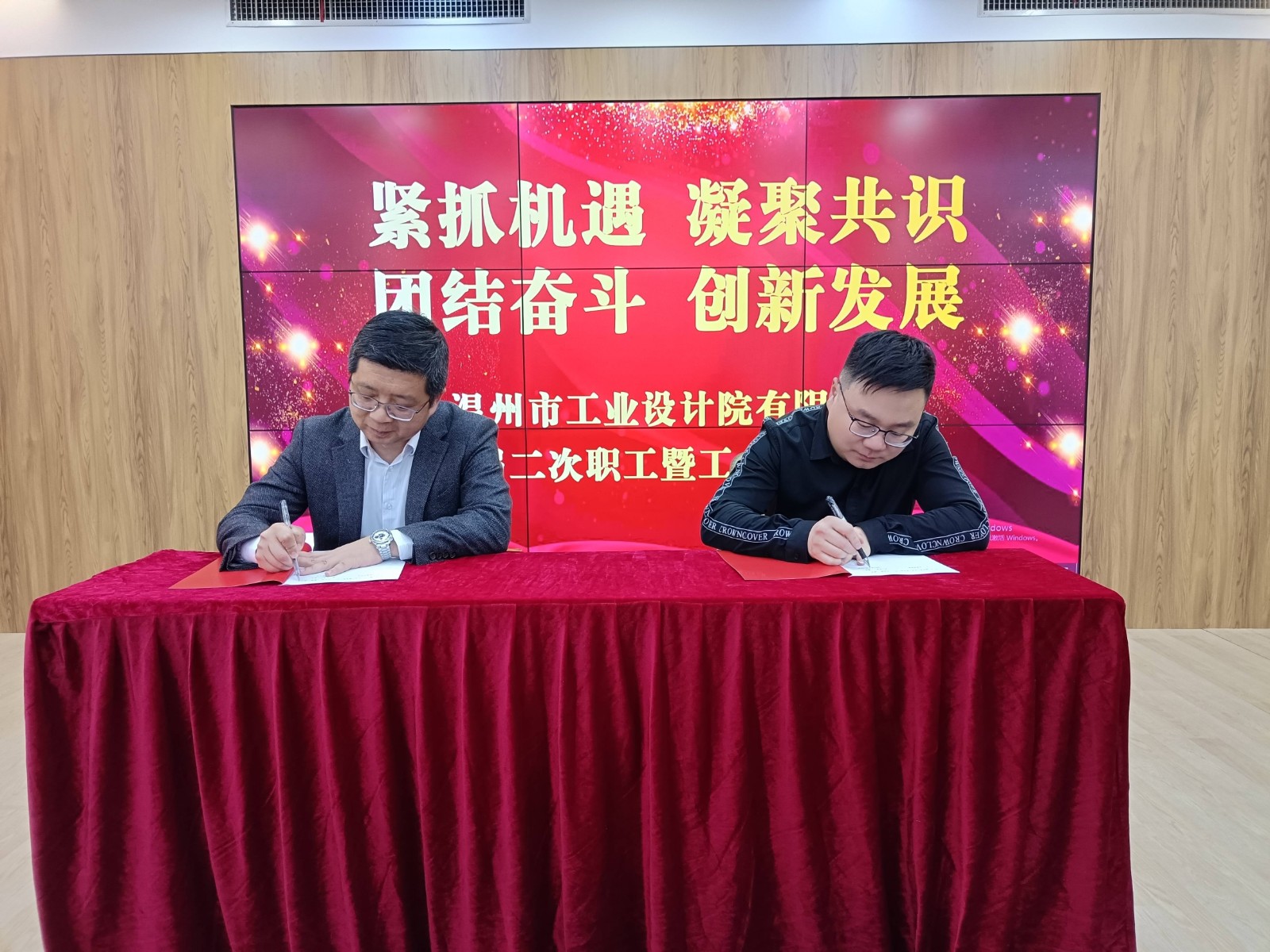 大會審議通過了上述報告,并表決通過了《產(chǎn)值分配規(guī)定》、《生產(chǎn)部門切塊分配管理辦法》、《薪酬制度》、《人力資源管理辦法》等新修訂的制度。會議最后由總經(jīng)理吳家強代表公司與各部門負責人簽訂了2023年度目標責任書。